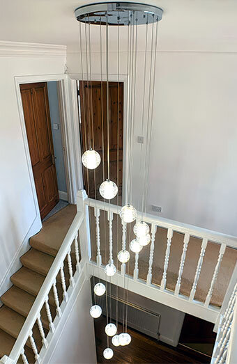 Professional installation of all types of lighting fixtures, including pendant lights, downlights, oyster lights, and decorative chandeliers for new homes and renovations.